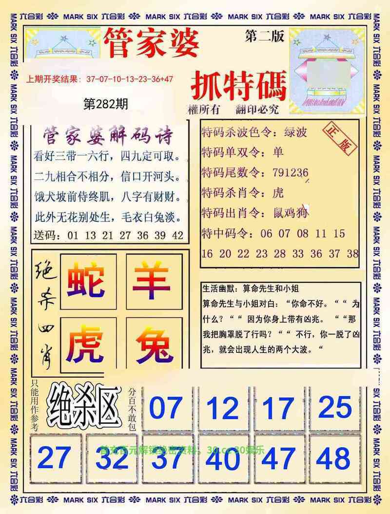 282期:家野两肖【家禽+龙虎】开:牛41准 |